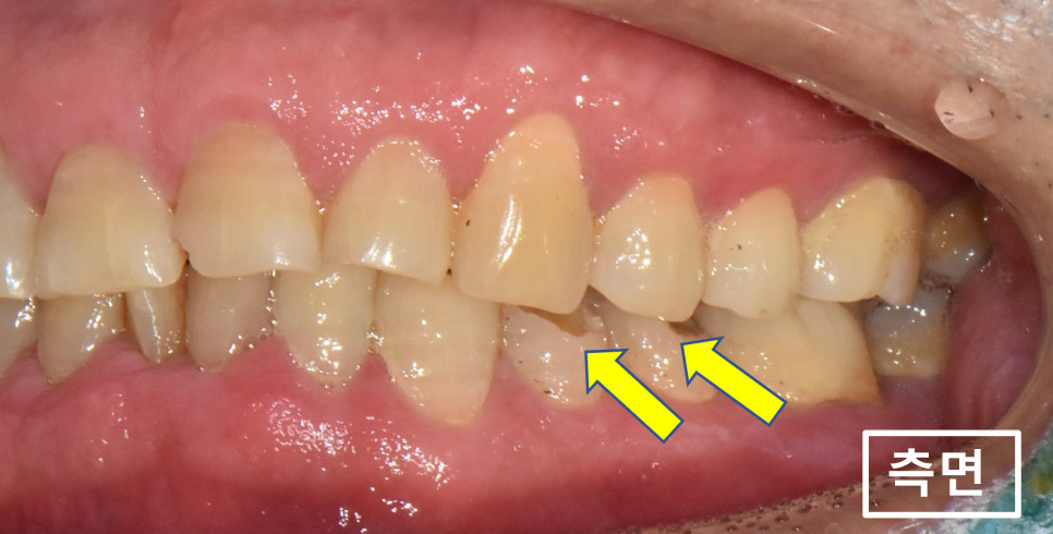 노랑색화살표를 보시면 양쪽 작은어금니들이